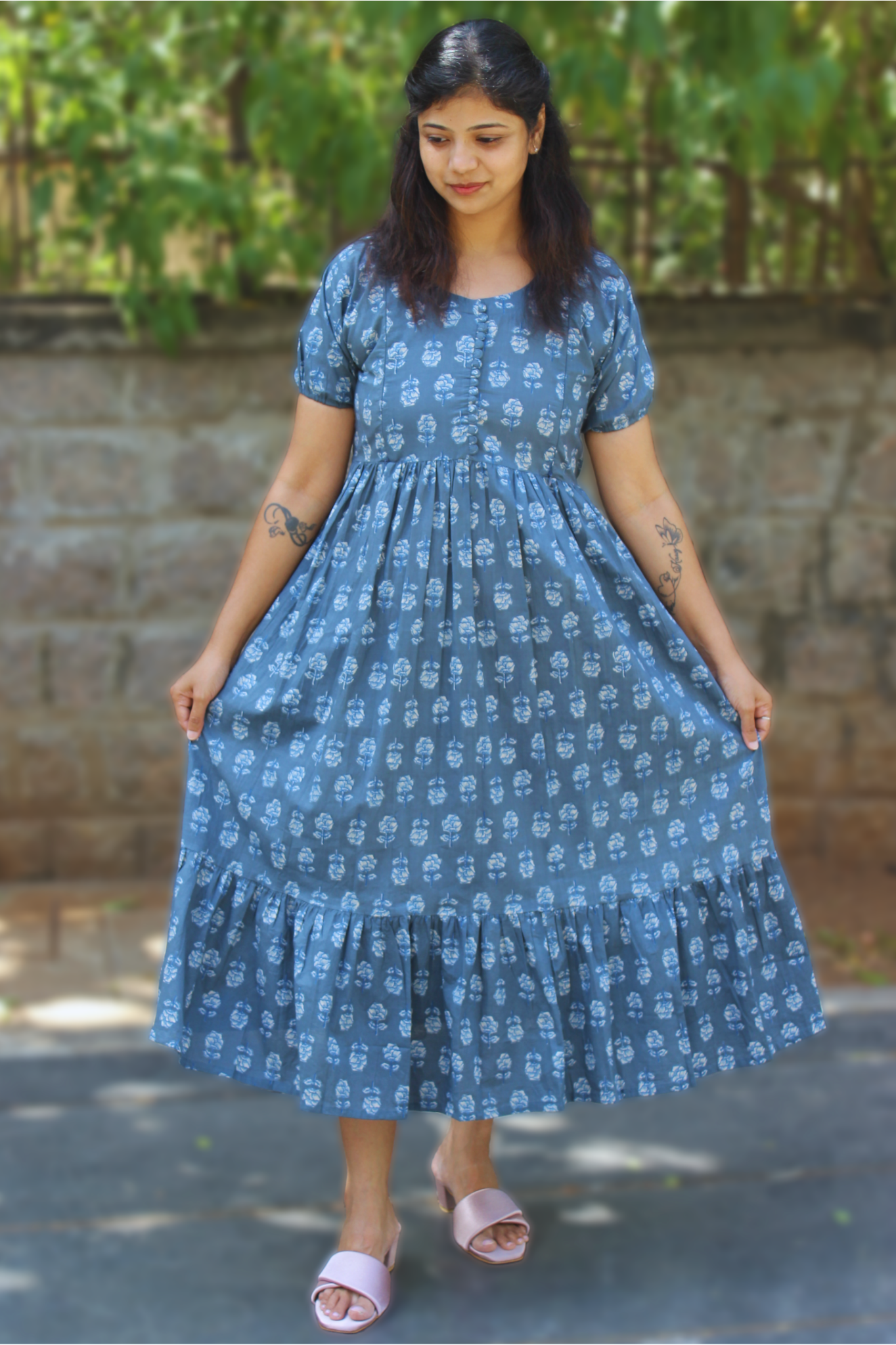 Nursing Accessibility: This style are made with nursing-friendly zips . These zips allow for convenient and private breastfeeding, making the dress a functional choice for postpartum use.