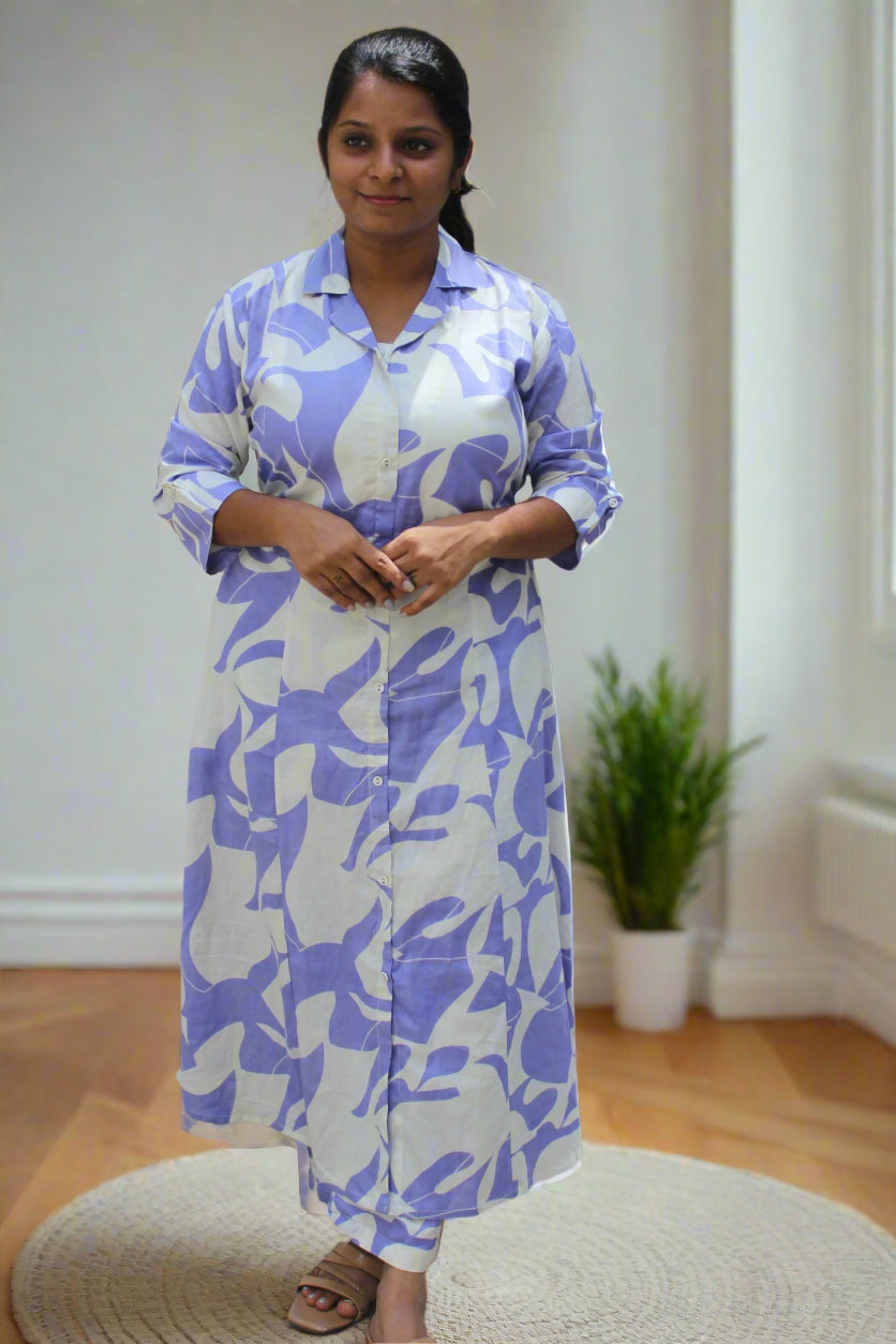 This premium maternity kurta set is thoughtfully designed to provide exceptional comfort without compromising on style. Crafted from ultra-soft P. Cotton, the set features a stylish printed kurta paired with coordinating trousers, ideal for both everyday wear and special occasions during and after pregnancy.