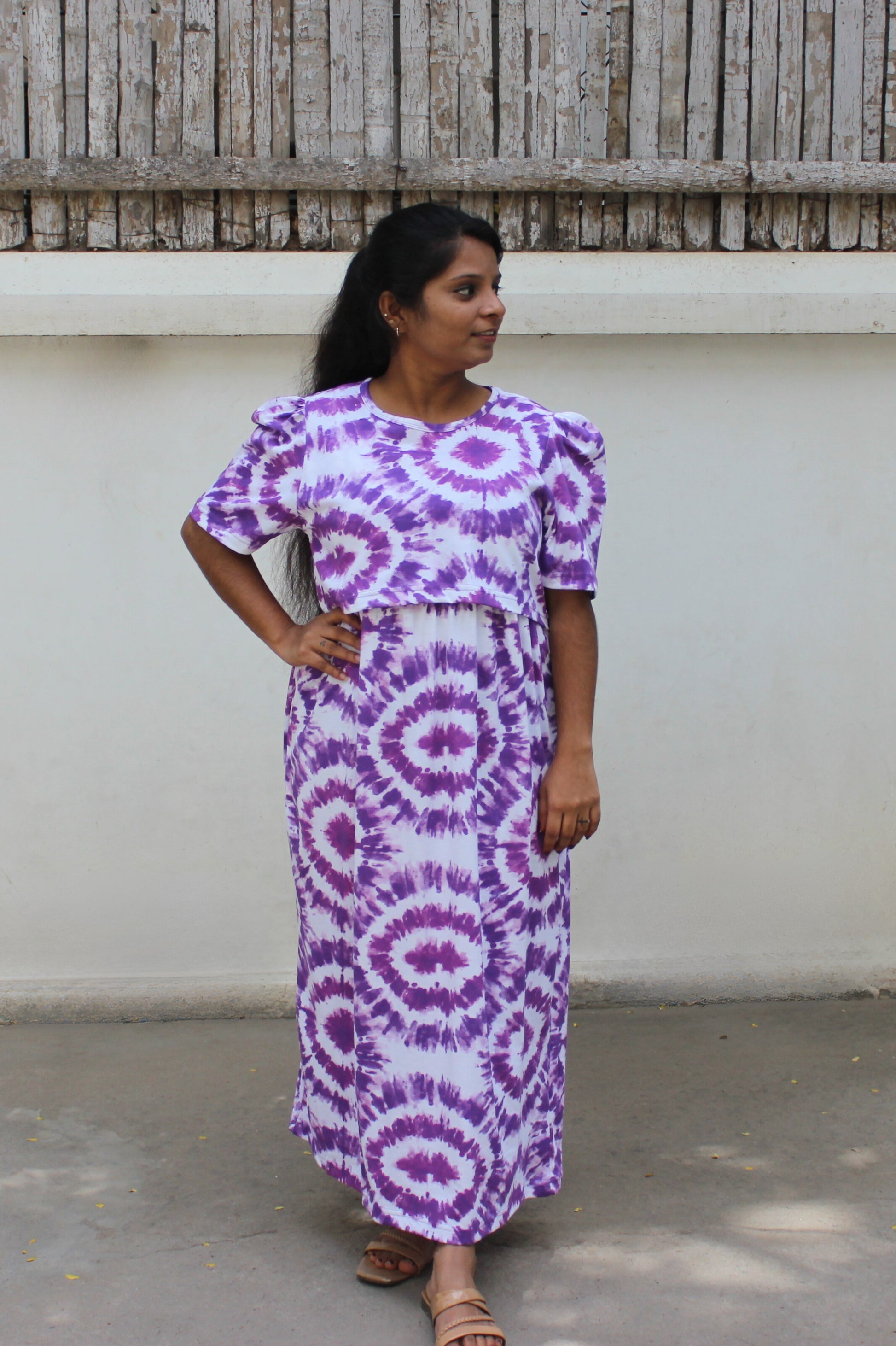Purple Dream Zipless Maternity Wear, designed specifically for expecting mothers. This casual wear piece offers a seamless design without zippers, ensuring no pressure or discomfort on your baby bump. Crafted for both style and functionality, it allows effortless movement and breathability throughout your day. Ideal for everyday wear, this floral outfit supports your changing body while keeping you looking effortlessly chic.