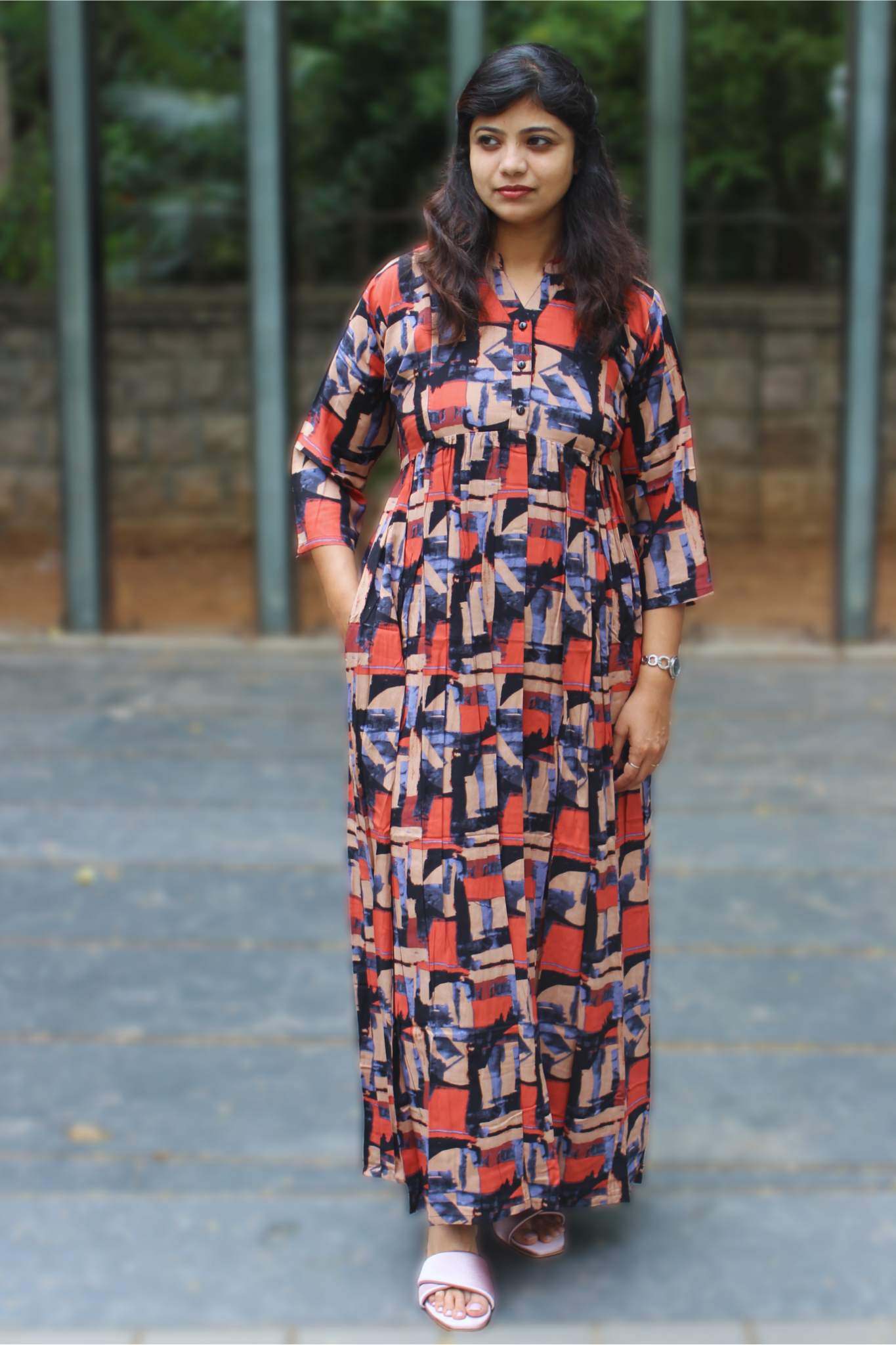 Nursing Accessibility: This style are made with nursing-friendly zips . These zips allow for convenient and private breastfeeding, making the dress a functional choice for postpartum use.